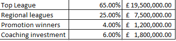 - Regionalisation: Ensuring interest in a 40 league product is difficult. Increasing the top division to 16 introduces more match diversity, something top league supporters have been crying out for. Under this we regionalize into 2 leagues with the winner of each playing in a final “playoff” game to achieve promotion to the top division (super bowl style 1 off winner with 1 up and 1 down)